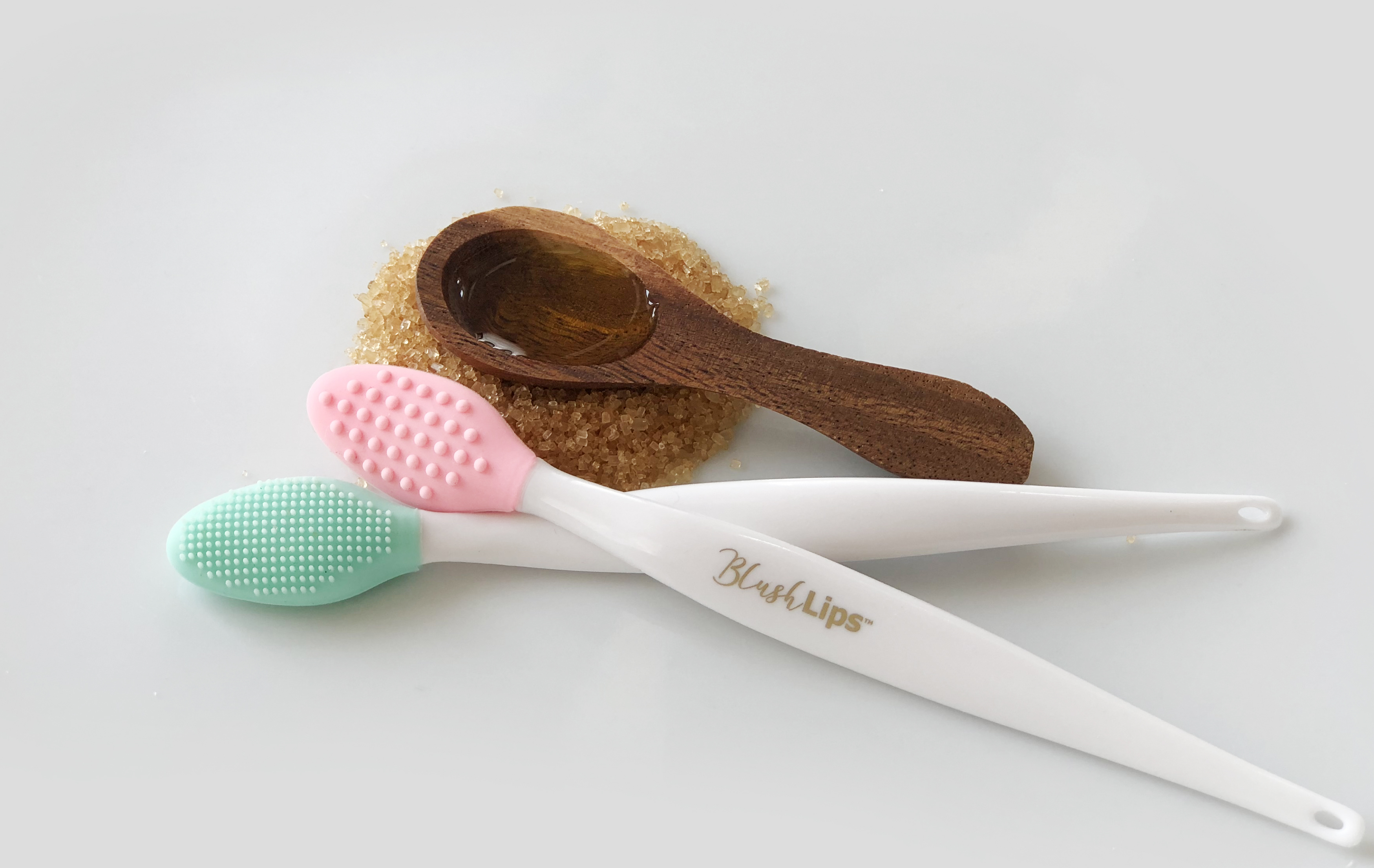 Use the BlushLips brush thin bristled side to slather the mixture onto lips and scrub gently in a circular motion for a few seconds or up to 2 minutes.