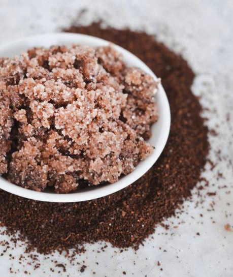 Start by adding coffee, coconut oil, and sugar together in a small bowl. Stir the mixture until it’s well blended.